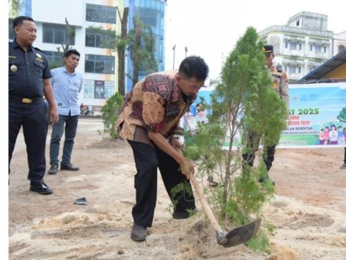 Kasat Lantas Melakukan Penanaman Pohon di lingkungan sekolah SMAN Bernas Binsus