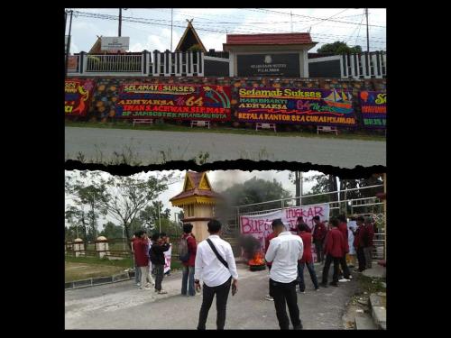 Kabupaten Pelalawan Sedang Berkabut Dan Bersedih Dihari HUT Adiyaksa Ke-64, Diwarnai Mahasiswa Demo Aksi Bakar Ban Di Gedung DPRD