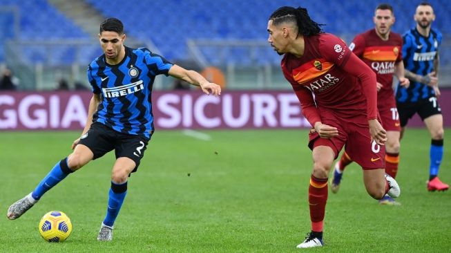 | Wing-back Inter Milan, Achraf Hakimi (kiri) menguasai bola dan