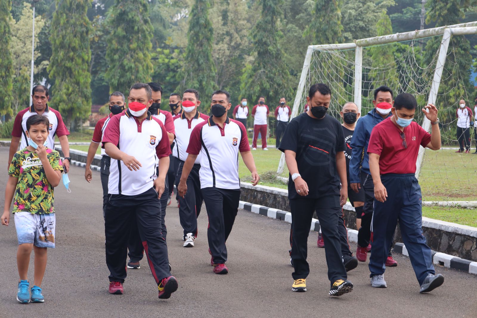 SERANG - BERITATIME.COM - Dalam rangka menjaga kesehatan dan kebugaran tubuh di masa pandemi covid-19 sekaligus memupuk rasa kebersamaan dan kekompakan, Polda Banten melaksanakan kegiatan olahraga rutin yang dilakukan setiap jumat pagi.