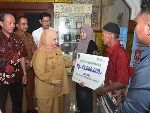 Bentuk Perlindungan Negara, Bupati Kasmarni Serahkan Santunan Kematian kepada Ahli Waris Pekerja Rentan