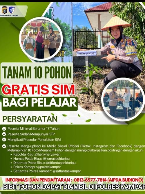 Trobosan Green Living, Satlantas Polres Kampar Berikan SIM Gratis bagi Pelajar, Cek Syarat dan Ketentuannya