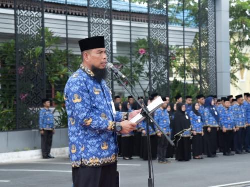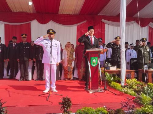 Kenakan Pakaian Kebesaran Adat Melayu, Sekda Pimpin Upacara HUT Riau ke-68 di Rohil